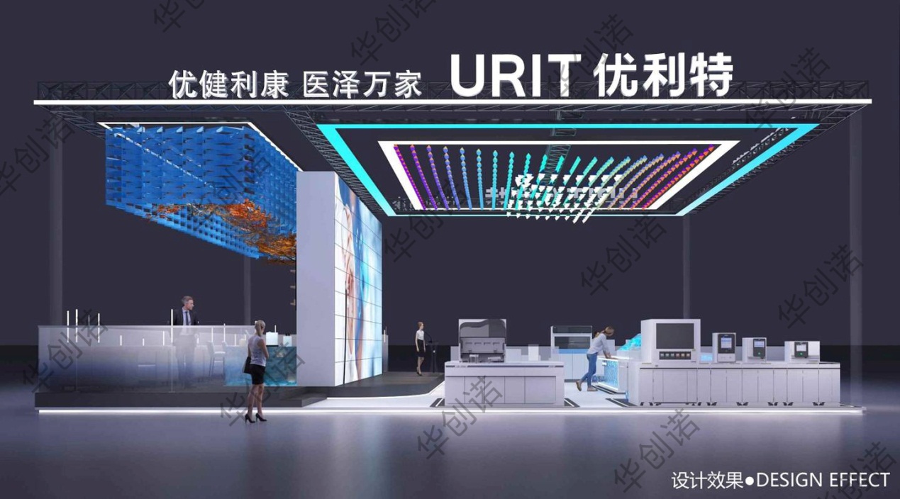在本次优利特的展台设计中,华创诺创新性将众多艺术性展示元素融入到临展展台场景,用声、光、影打造出一个梦幻舞台,给观众带来新颖震撼的沉浸式观展体验。由数百个数控灯珠组成的显示阵列,犹如夜空中的闪烁的璀璨繁星,时而叙事,时而起舞,时而浪漫,时而热烈,不仅引得观众流连驻足,更与优利特此次 “星光熠熠,智检无垠”的新品发布会主题和现场氛围完美契合。 对美的更高追求往往意味着更高的施工落地挑战。从前期的画面创意脚本设计、数控程序编程、顶部结构安装工艺的优化与调整,到现场巨大的安装工作量,都是对搭建商对细节和整体把控能力的严峻考验。在施工现场,优利特的半成品展台已经频频引来周边展商侧目,不禁惊叹到:“100多平的展台,用上了十八般展现武艺!”这样的赞叹,正是华创诺存在的意义,也是华创诺给客户创造的价值所在。